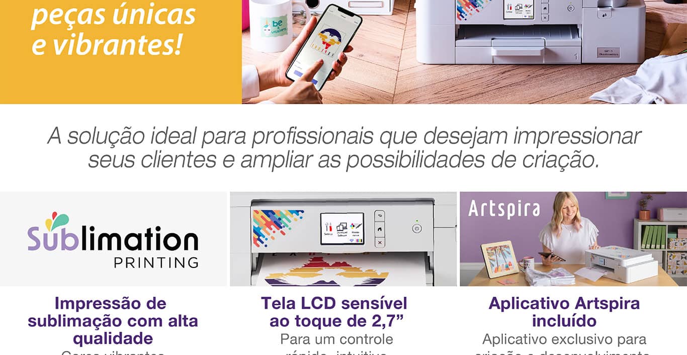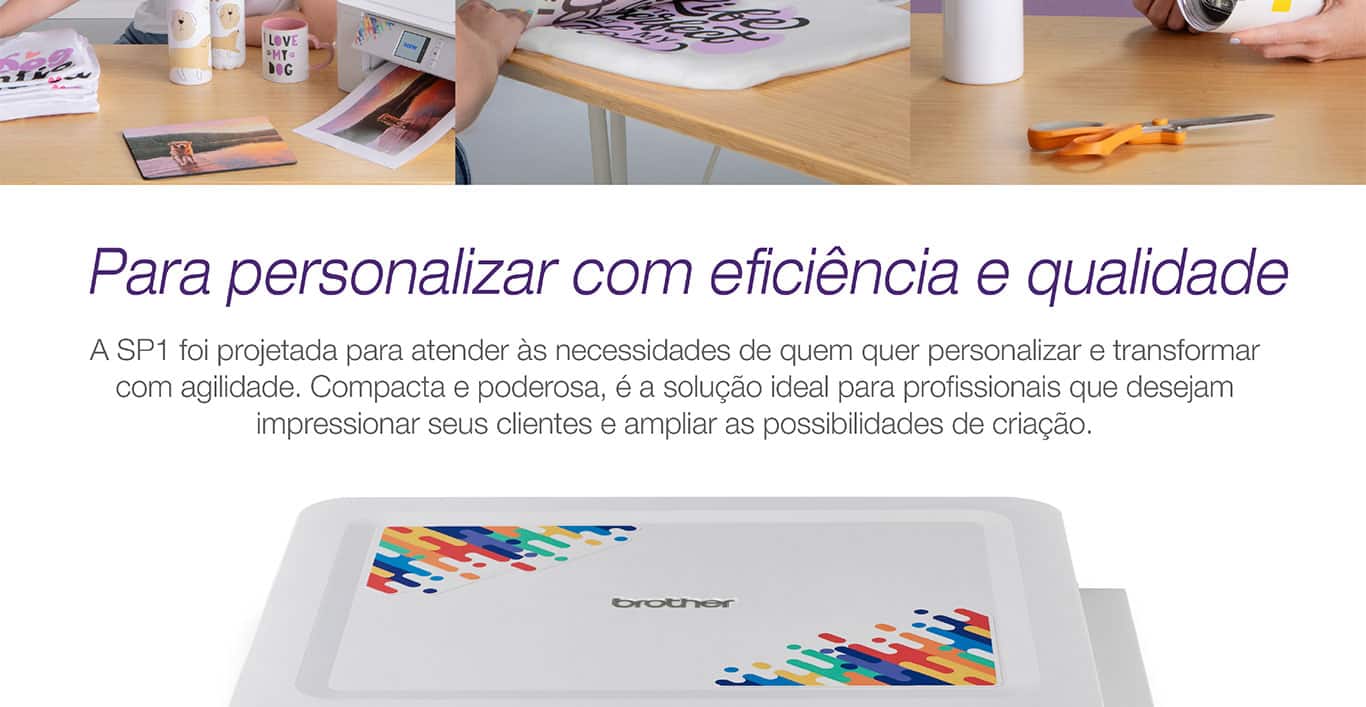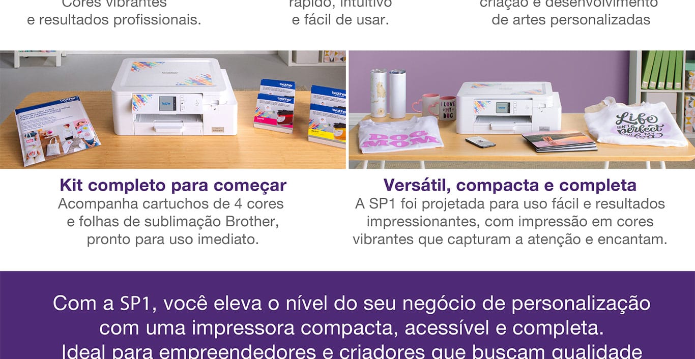 Não apenas poderosa, a impressora sublimática SP-1 da Brother também conta com um design compacto e moderno, ideal para ser instalada em qualquer espaço de trabalho. Prepare-se para impressionar seus clientes com produtos personalizados, sejam eles para eventos especiais, lembranças ou presentes. É hora de dar vida à sua criatividade e transformar suas ideias em realidade com a eficiência e qualidade que só a Brother pode oferecer!