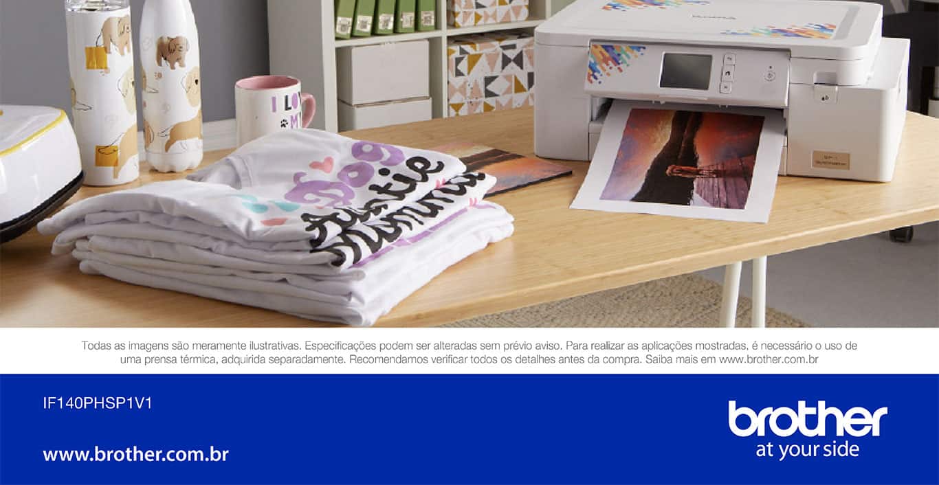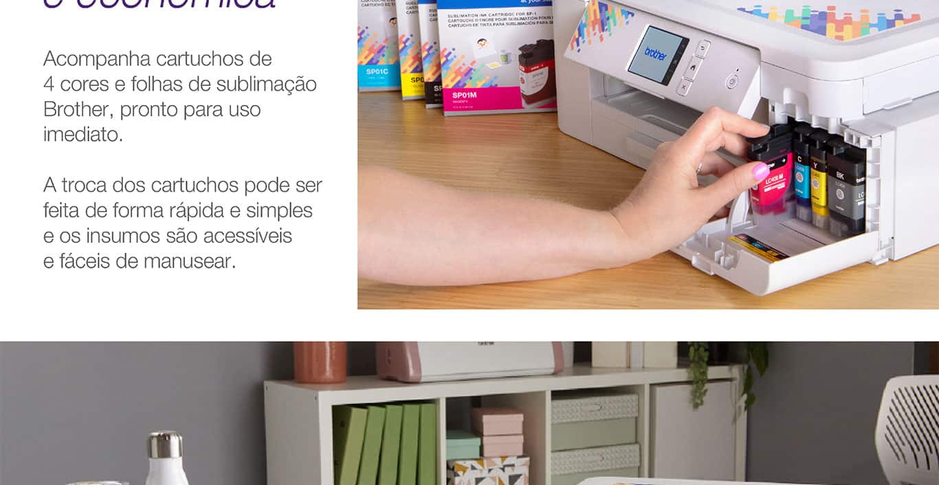 - Conteúdo da caixa: 1 kit de cartucho inicial + Papel de sublimação Brother inicial (Prensa não inclusa)