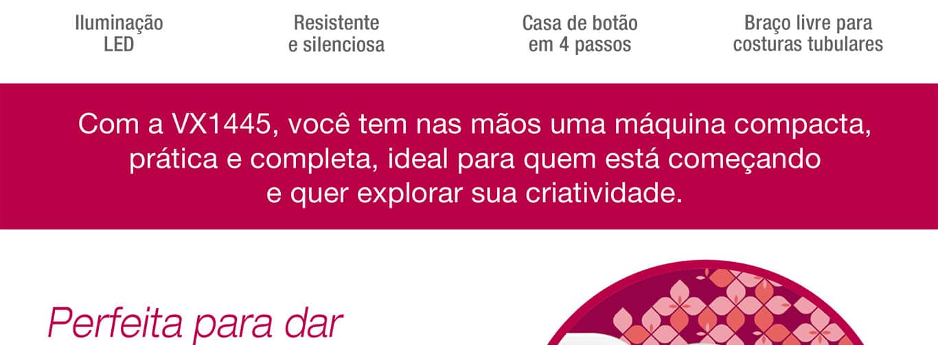 - Perfeita para quem procura uma máquina compacta e completa para atender desde a costura simples aos projetos mais elaborados